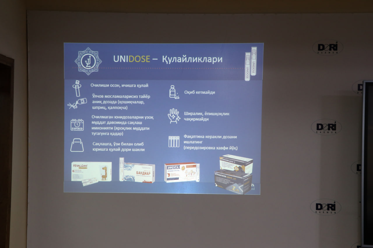 В ходе обучения представители фармацевтической компании «Jurabek Laboratories Ltd» приняли участие и провели презентацию современных юнидозовых лекарственных средств компании.